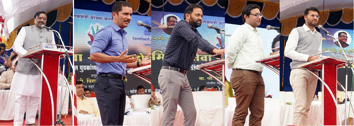 या कार्यक्रमाच्या व्यासपीठावर आमदार नानाभाऊ शामकुळे जिल्हा परिषदेचे अध्यक्ष देवराव भोंगळे, चंद्रपूरच्या महापौर अंजलीताई घोटेकर, रुलर रिलेशनचे संस्थापक प्रदीप लोखंडे, सीजीएसटी मुंबईचे सहाय्यक आयुक्त राहुल गावंडे, लातूर जिल्हा परिषदेचे मुख्य कार्यकारी अधिकारी विपिन ईटनकर,अकोल्याचे उपजिल्हाधिकारी अभयसिंह मोहिते, जिल्हाधिकारी डॉ. कुणाल खेमनार, जिल्हा पोलीस अधीक्षक डॉ. महेश्वर रेड्डी, मुख्य कार्यकारी अधिकारी जितेंद्र पापळकर, उपवनसंरक्षक गजेंद्र अहिरे,बांबू संशोधन परीक्षण केंद्राचे संचालक राहुल पाटील, अतिरीक्त जिल्हाधिकारी सचिन कलंत्रे, समाज कल्याणचे सहाय्यक आयुक्त प्रसाद कुलकर्णी, सहाय्यक जिल्हाधिकारी योगेश कुंभेजकर, उपमहापौर अनील फुलझेले, स्थायी समिती सभापती राहुल पावडे यांची उपस्थिती होती.